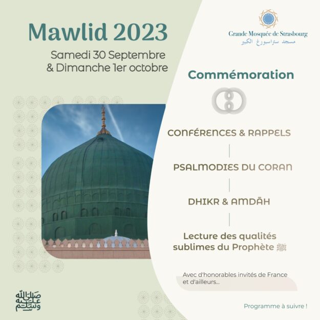 📢 Nous sommes heureux de vous dévoiler la date du Mawlid organisé par la Grande Mosquée de Strasbourg.