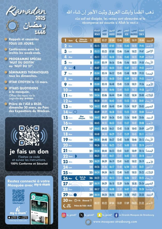 Alors à vos agendas…Venez nombreux à la Grande Mosquée de Strasbourg, nous vous y accueillerons avec joie et amitié.