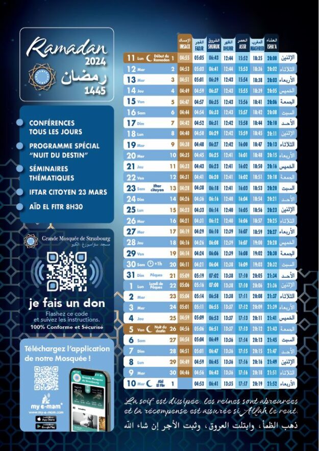 Nous remercions cheikh Rachid de nous honorer de sa présence, pendant tarawih mais aussi de nous offrir des moments d’écoute en journée, pour que les fidèles puissent entendre les secrets d’une parfaite psalmodie du Saint Coran.